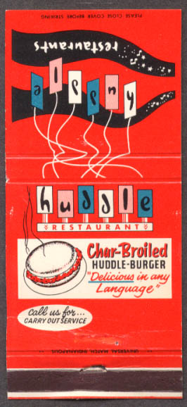 Compare the above building photos, and the different design of the 2 matchbooks, and you can see that the Lima Huddle's faux-Colonial architecture did not share the same mid-century-modern/space age/googie style design aesthetic of the rest of the Huddle buildings, like the ones in Los Angeles, California. (Read more about the western Huddle restaurant chain here.)