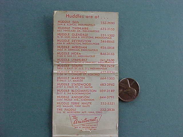 According to the above matchbook, there was a member of the Huddle restaurant chain in Lima, called The Paddle, on Northern Ave [Northland Plaza]. The Lima 'Huddle' location is not listed.