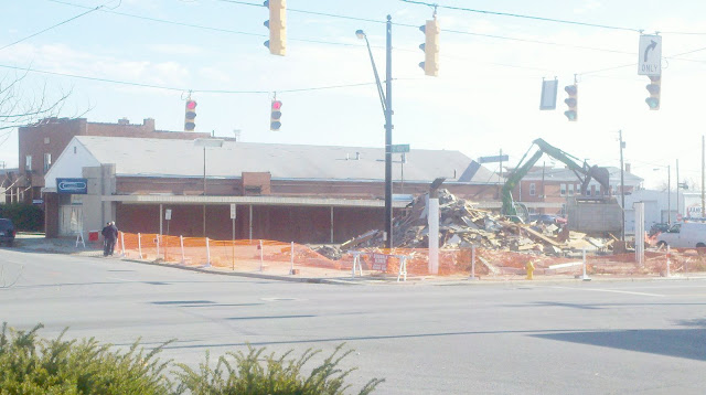 Here's the truck parked by the building. They were getting ready to take the sign down. Too bad it was a cold day, or I'd have hung around to get some action shots.