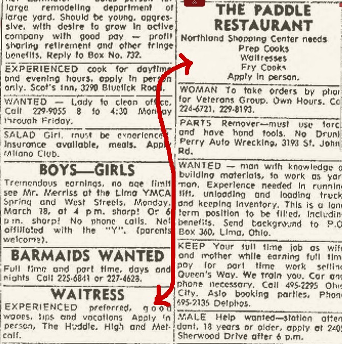 However, I found a comment on a site discussing old Lima businesses, that says: "[in] Northland [Plaza], near West Street, was the “Paddle” Restaurant. A great example of “googie” architecture of the era."